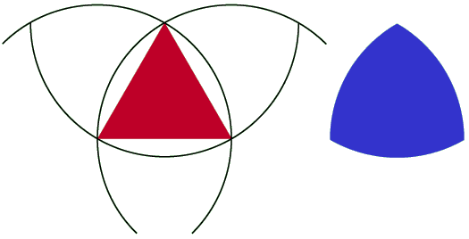 If you put a circle between two lines and rotate it, it always has the same width, right? There are other shapes that do this, too. For instance, take an equalateral triangle and draw 3 arcs from each corner to the other, with the center at the third corner. The resulting shape is called a Reulaux triangle, and it is a curve of constant width. That is, as you rotate it, it always retains the same width. Barbier's Theorem states that all curves of a constant width have the same perimeter: multiply the constant width by pi. For a circle, you get the circumference by multiplying the diameter of the circle by pi. In a Reuleaux triangle, you would multiply the length of one side of the original triangle. Thanks to Professor Millie Johnson at Western Washington University for this one!